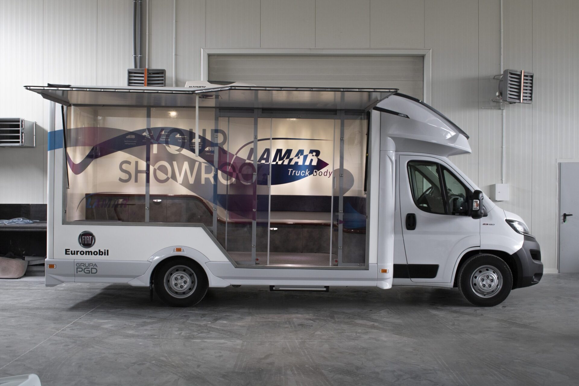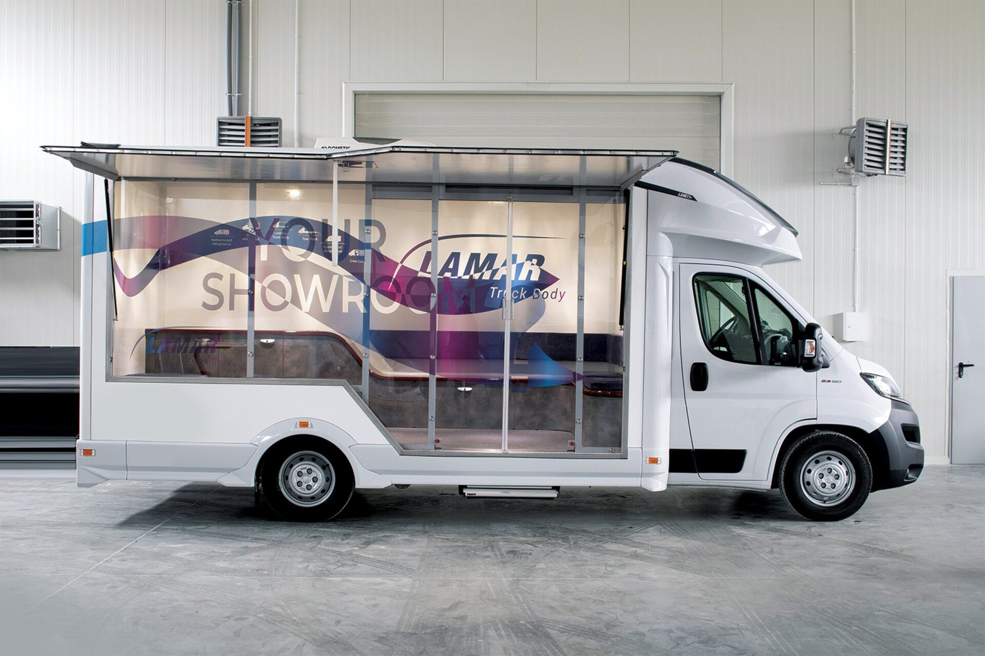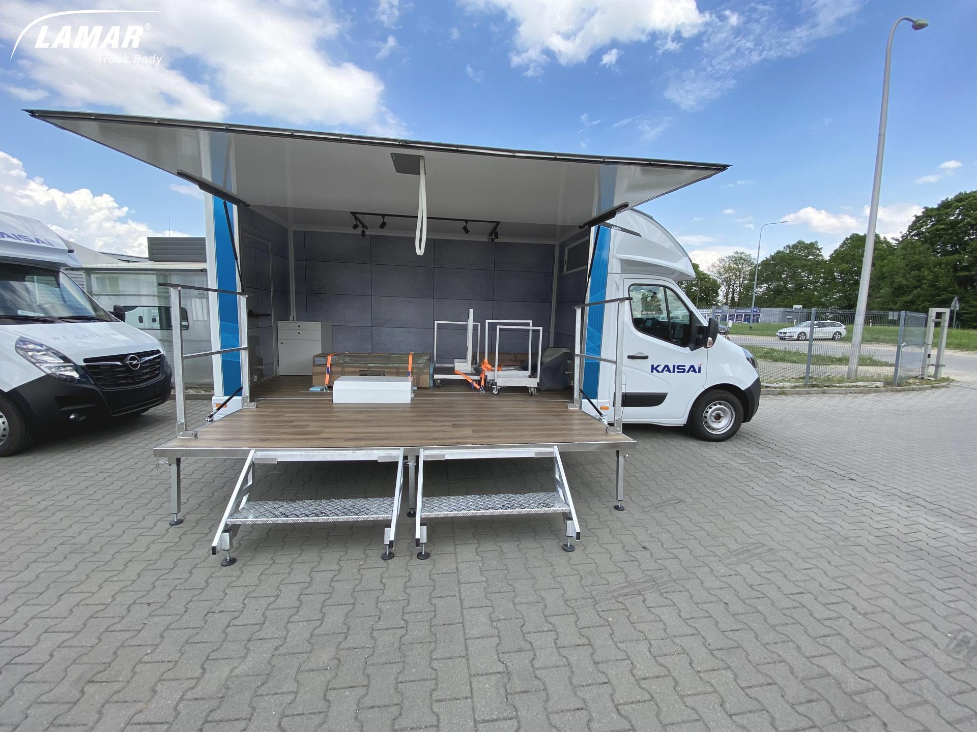 Nasze pojazdy są projektowane stricte pod Klienta. W zależności od prowadzonej działalności, oferujemy całą paletę rozwiązań takich jak: klapy boczne, podesty, ściany w poliwęglanu, lady, wysuwane i składane reklamy dachowe, drzwi i okna w różnych lokalizacjach i rozmiarach, sekcje wodne (zlewy, umywalki, WC), TV, głośniki czy megafony. Wykonujemy meble na zamówienie, stoły, kanapy, fotele, biurka, szafy… Wszystko czego potrzebujesz by wypromować swoje produkty. LAMBOXy wykorzystywane są w całej europie jako centra szkoleniowe.