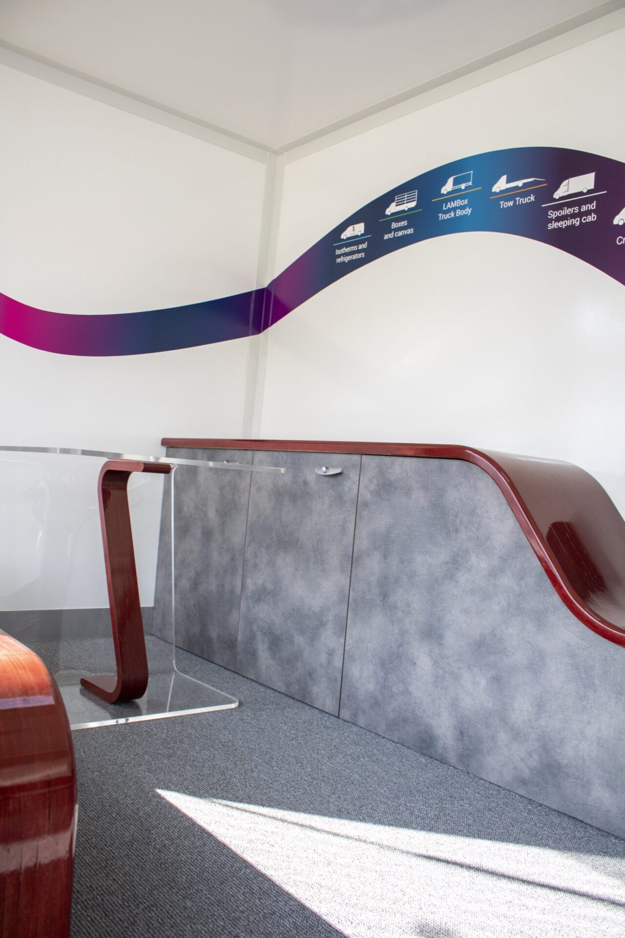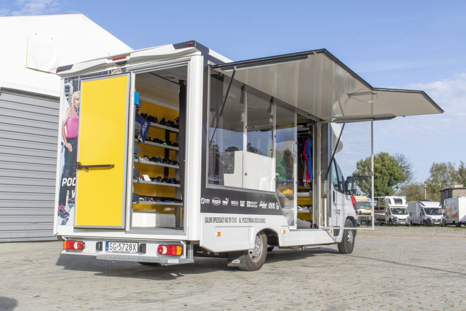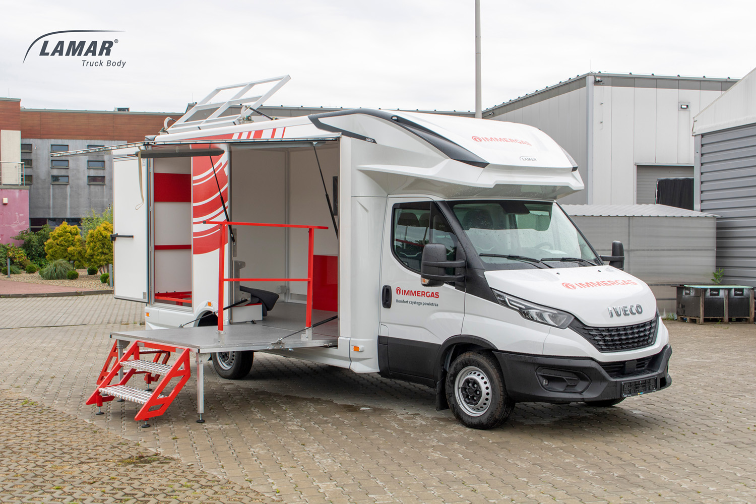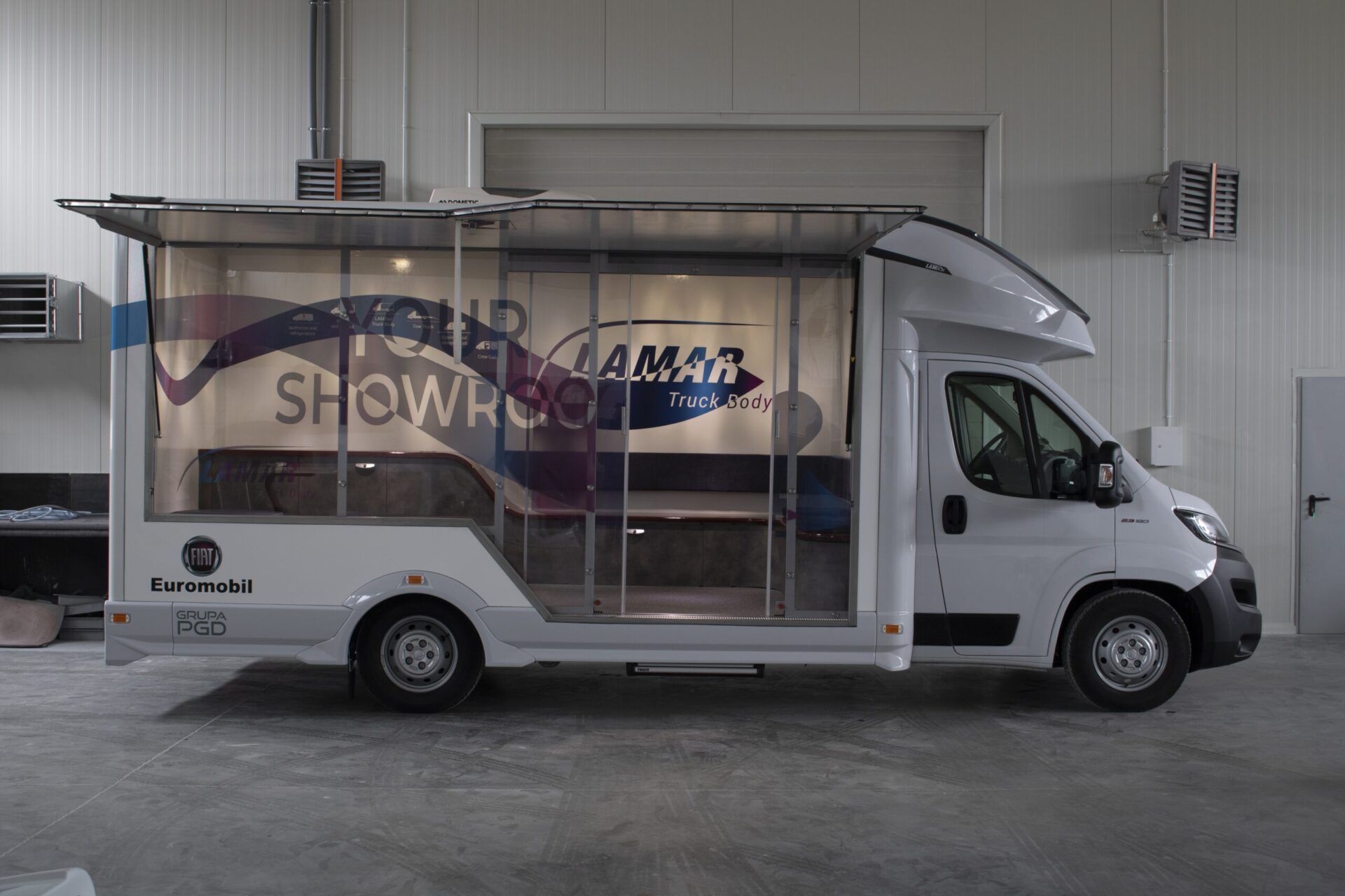 Nasze pojazdy są projektowane stricte pod Klienta. W zależności od prowadzonej działalności, oferujemy całą paletę rozwiązań takich jak: klapy boczne, podesty, ściany w poliwęglanu, lady, wysuwane i składane reklamy dachowe, drzwi i okna w różnych lokalizacjach i rozmiarach, sekcje wodne (zlewy, umywalki, WC), TV, głośniki czy megafony. Wykonujemy meble na zamówienie, stoły, kanapy, fotele, biurka, szafy… Wszystko czego potrzebujesz by wypromować swoje produkty. LAMBOXy wykorzystywane są w całej europie jako centra szkoleniowe.